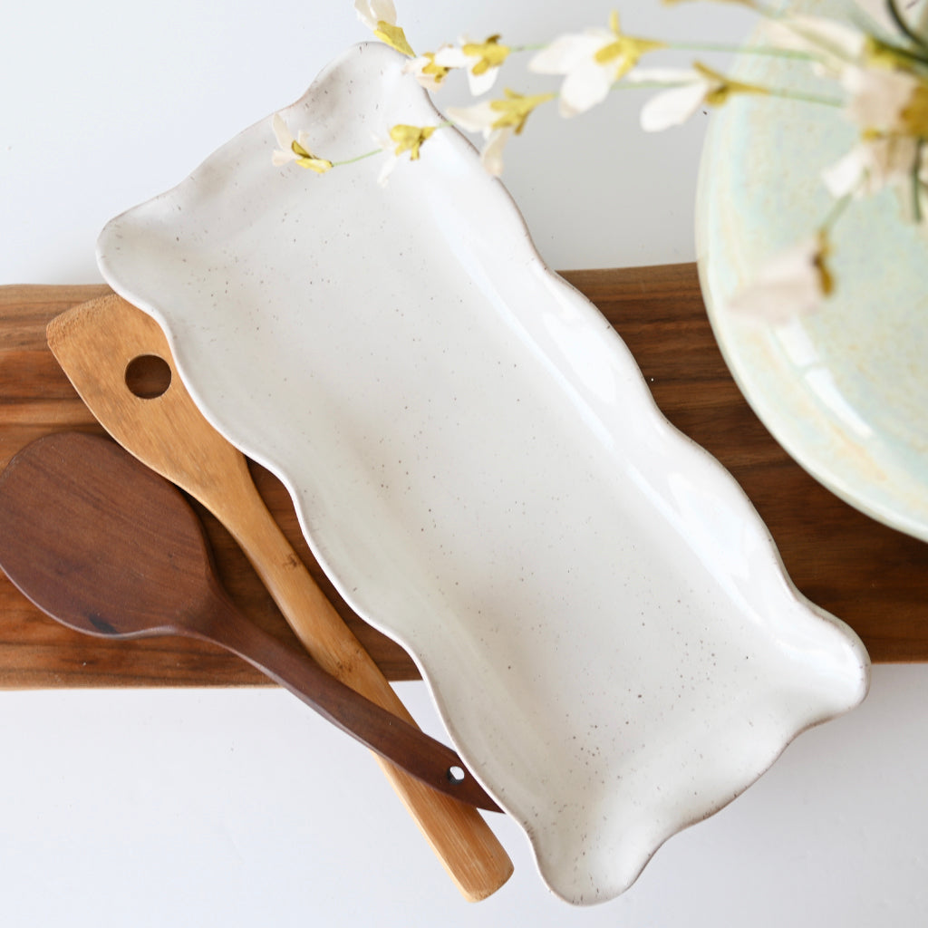Each unique piece of Etta B Pottery is handcrafted and meticulously hand painted. This beautiful glaze is sure to coordinate with any décor. This versatile piece is the perfect size for an appetizer, desserts, or cheese tray & would make the perfect display piece, as well!