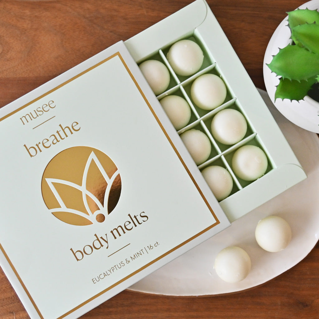 Enjoy these solid, eucalyptus infused body melts that melt into skin, delivering rich moisture and relaxation with every use- in or out of the bath or shower. Allow the melt to soften, glide over the kins and massage in for deep moisture and relaxation. Use in the shower, bath, or warm skin.