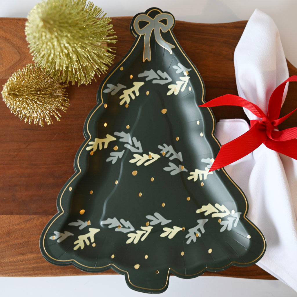 Make your holiday celebrations extra festive with this set of 8 Christmas tree-shaped paper plates. Perfect for serving snacks, treats, or meals, these fun and whimsical plates add a playful touch to any Christmas gathering. Easy to use and disposable, they help keep cleanup simple so you can focus on enjoying the season. Measures 12" x 10" at it's widest point.