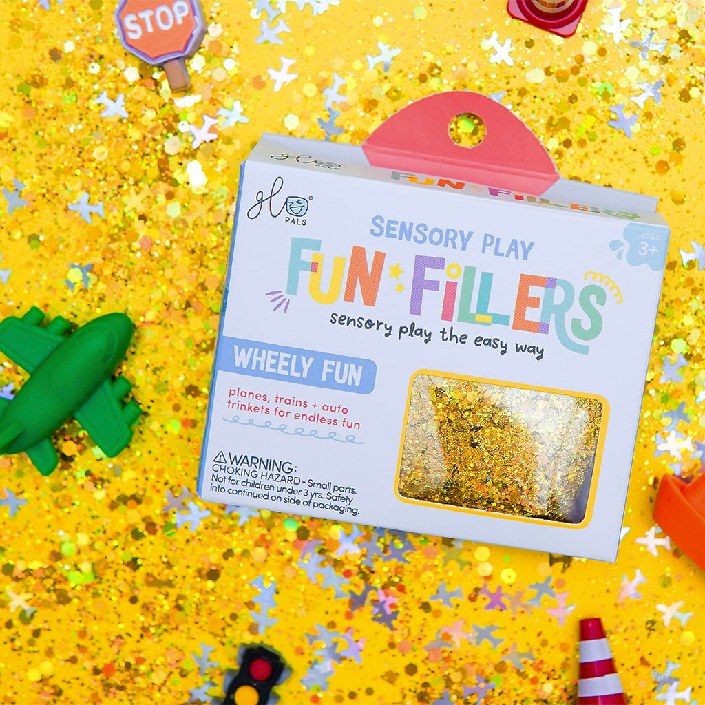 Fun Fillers take the fuss out of curating the perfect sensory play activity! Each pack includes planes, trains and auto themed sensory accessories that take playtime to the next level! These pair perfectly with the new Sensory Play Jar (not included, shop here) - or you can use them to enhance your favorite sensory bin. Get those little ones a pack of these wheel themed trinkets designed for endless fun!