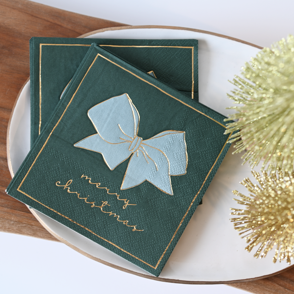 These Green Bow Beverage Napkins come in a convenient 20-count pack, combining festive design with practical use. Perfect for adding a touch of elegance to any gathering, they provide reliable absorbency to keep your guests’ hands and surfaces clean. Crafted for single-use convenience, these napkins are ideal for parties, picnics, or everyday entertaining where style and function matter.