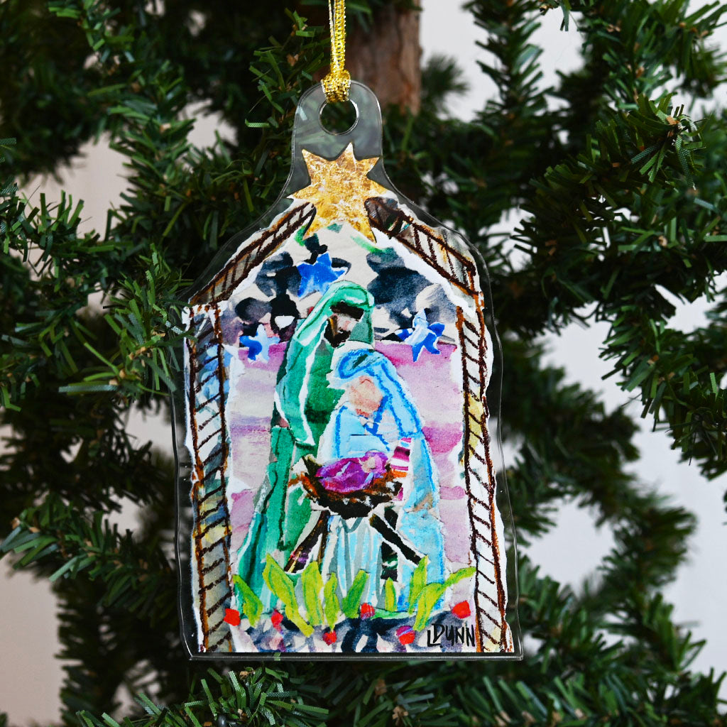The Holy Family Acrylic Ornament by Lauren Dunn offers an elegant portrayal of the nativity scene with refined craftsmanship. Made from durable acrylic, this ornament combines clarity and resilience, making it a lasting addition to your holiday collection. Its detailed design honors tradition while providing a sophisticated accent to any Christmas tree or display.