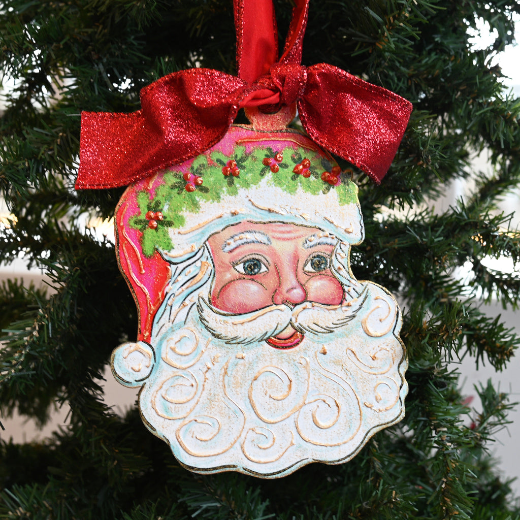 Add some traditional charm to your holiday decor with this unique wooden Santa ornament, creatively hand-painted by Mississippi artist Jennifer Stevens. Perfect for decorating your Christmas tree or for gifting to those on your list. Spread some festive cheer with this one-of-a-kind piece!