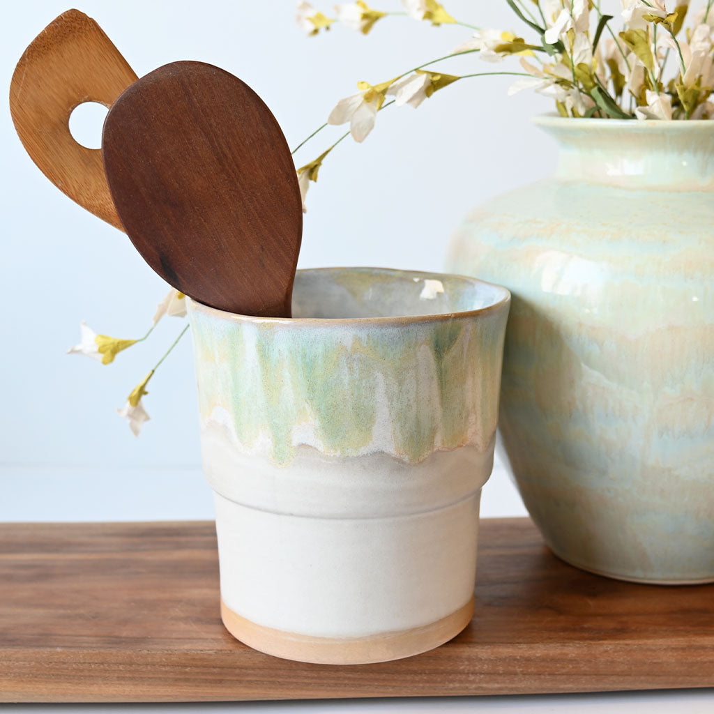 Keep your kitchen lively and organized with the Utensil Crock in Matcha! This versatile crock is perfect for holding everything from spatulas to wooden spoons, making cooking a breeze. Its clean, simple design fits any kitchen style while keeping your favorite tools within easy reach. Say goodbye to clutter and hello to fun, functional storage!