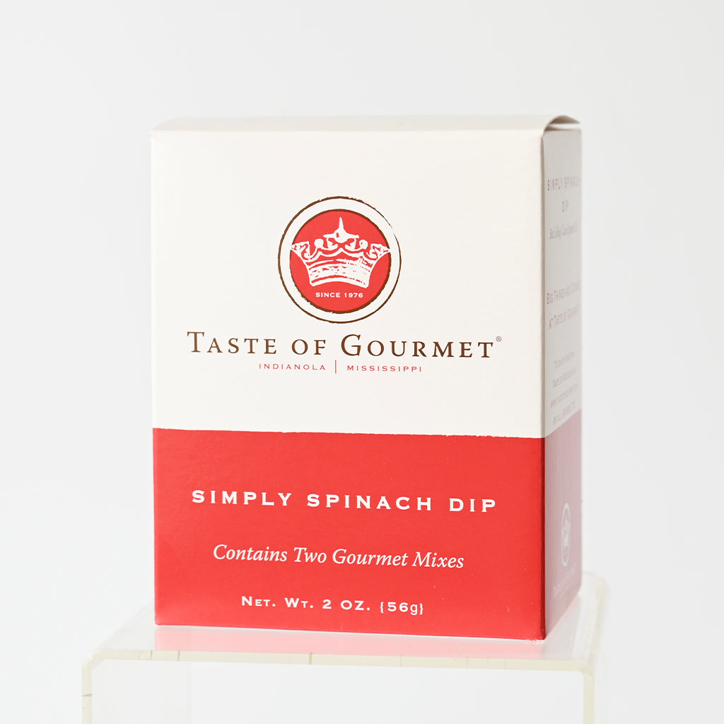 Classic spinach dip with roasted onion, spices and lots of dry spinach. Use sour cream for a dip or cream cheese for a cheese ball or make a hot spinach artichoke dip. Two mixes per box.