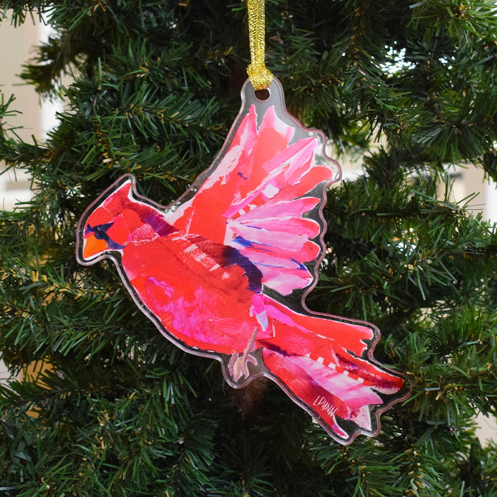 This beautiful Cardinal Acrylic Ornament from artist Lauren Dunn is the perfect addition to your holiday decorations. Crafted from acrylic, it is sure to become a treasured keepsake for years to come. Measures 6"x 4.5". Add one to your tree today!