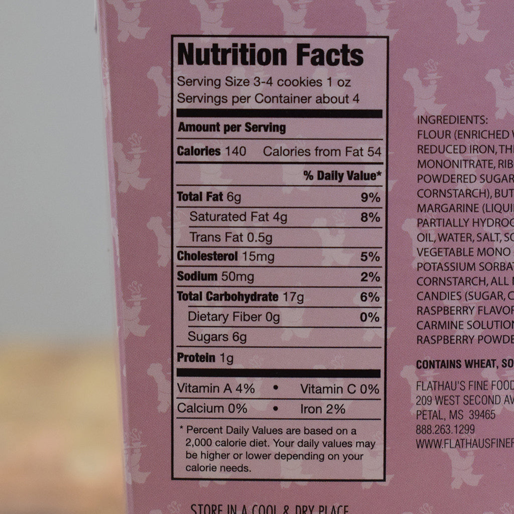 Ingredients: Flour, Powdered Sugar, Butter, Margarine, Water, Salt, Vanilla, All Natural Raspberry Candies, Raspberry Powder, Salt