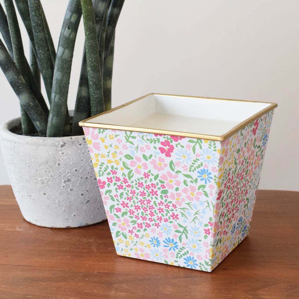 Introducing Cachepot Candles- when the wax has burned out, upcycle the pot into a planter or anything else you can think of! Hand-poured candles with two pounds of wax for a long burn time. Container is 5.5" both tall and wide and is 3.5" wide at the base.