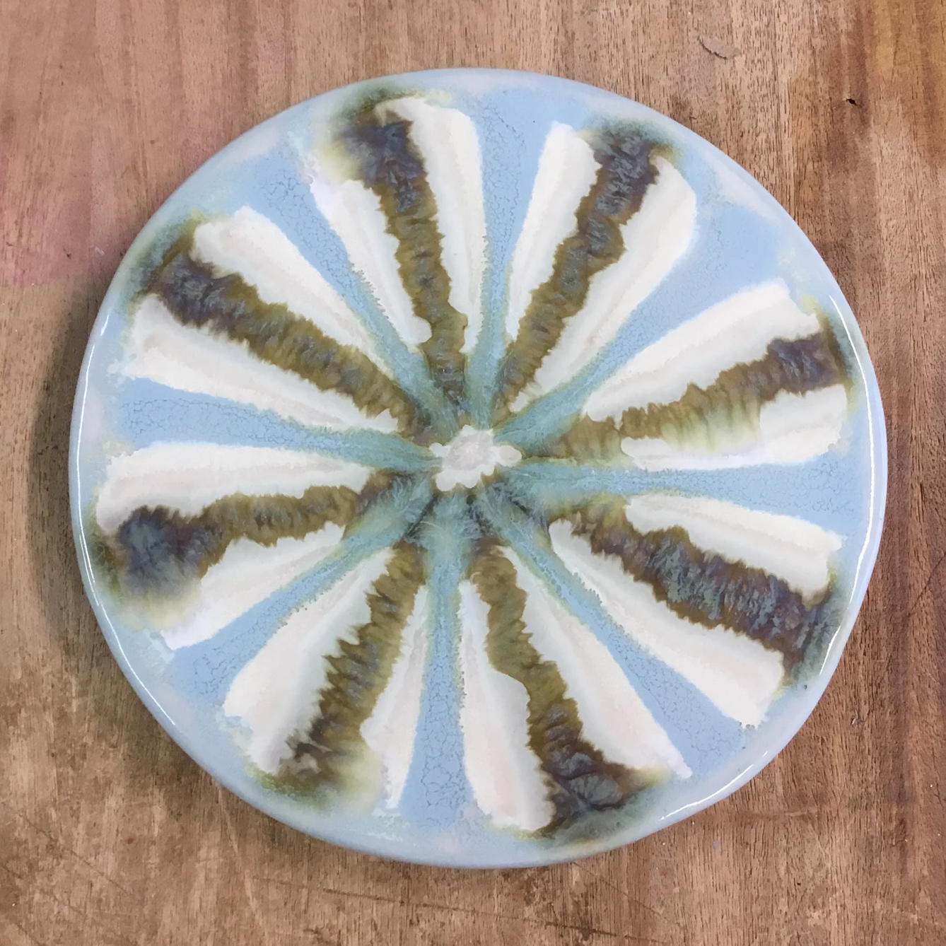 Good Earth's appealing colors and textures are sure to complement every room in your home. One-of-a-kind pieces are truly works of art and will dress up more than your dining table. Patterns and pieces are designed to be mixed and matched. Piece measures 6" in diameter