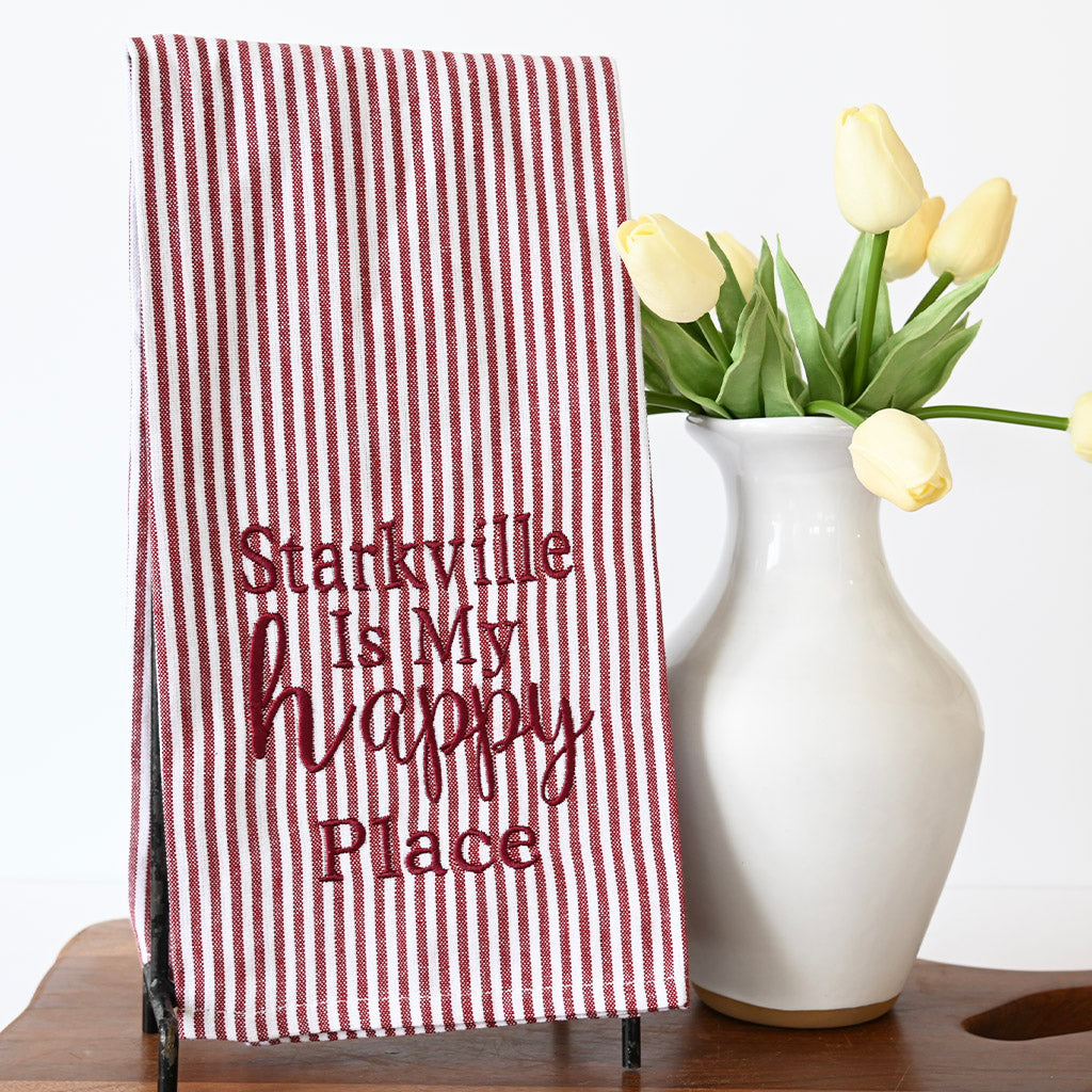 Starkville is my Happy Place Embroidered Hand Towel - TheMississippiGiftCompany.com