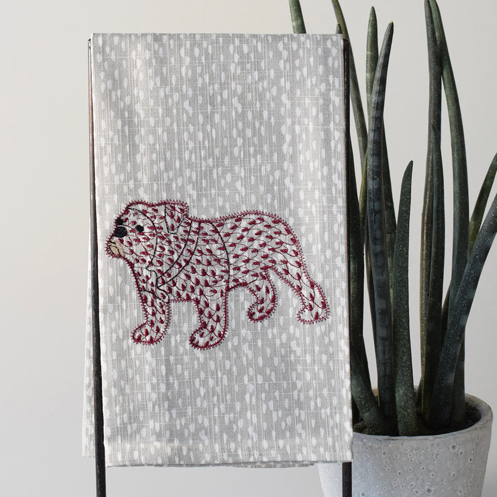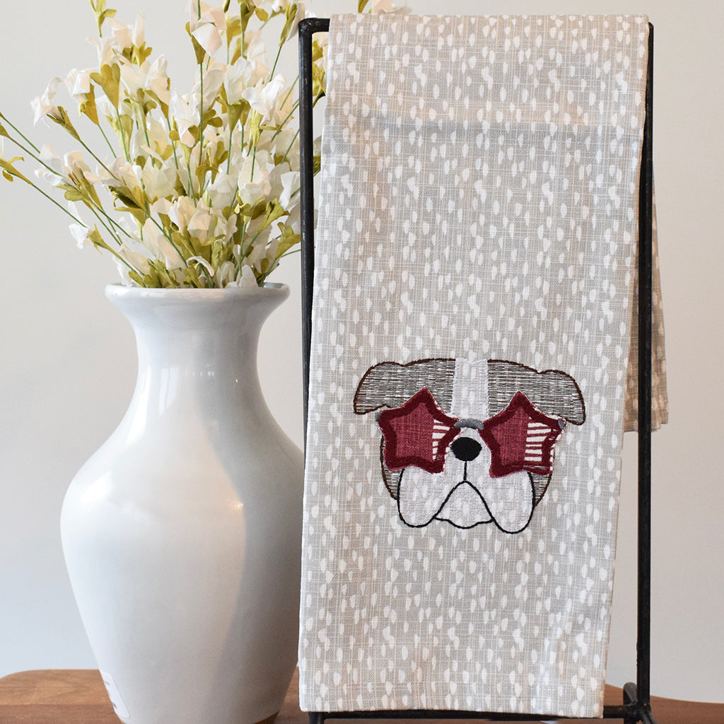 Maroon Bulldog Head Tea Towel - TheMississippiGiftCompany.com