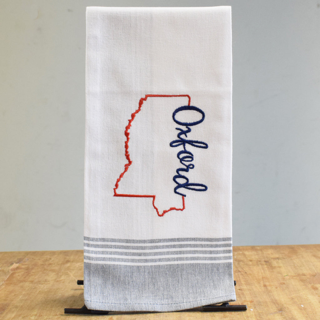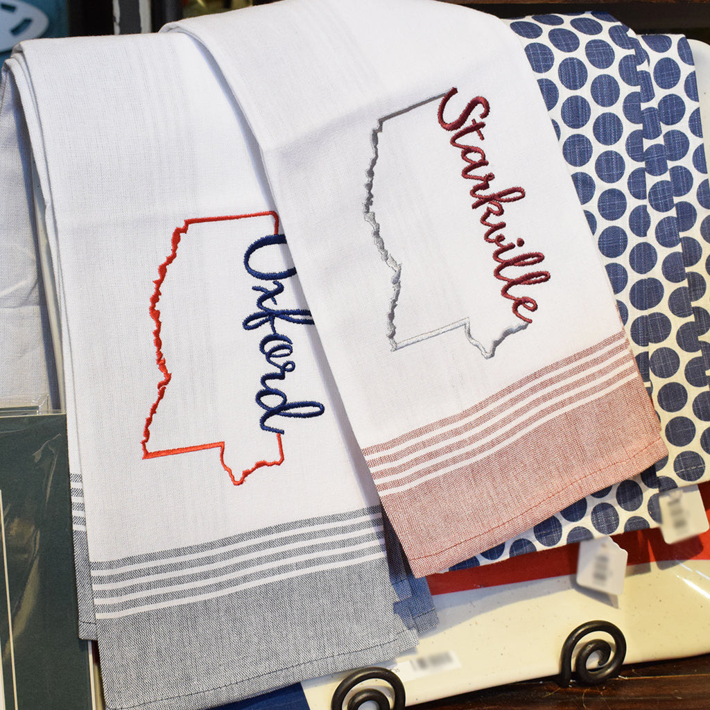 These adorable kitchen towels will be a great addition to your kitchen. Made with bright patterns on a 100% cotton hand towel. Embroidered state and city shows off your love for your hometown.