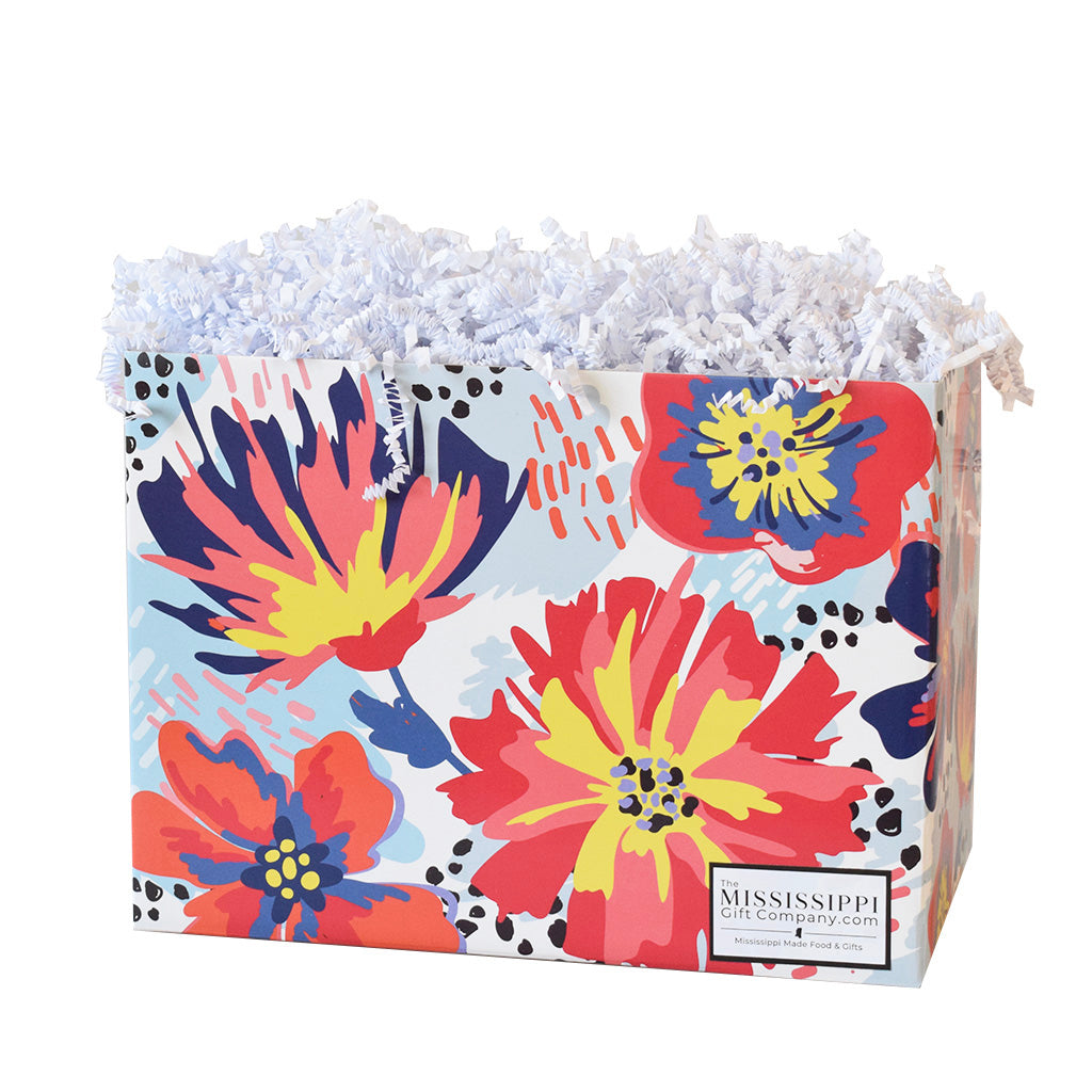 The Unfilled Large Flowerworks Box allows for customization by holding 6-8 items and measuring 10"x7.5", making it a practical and versatile option for gifting needs.