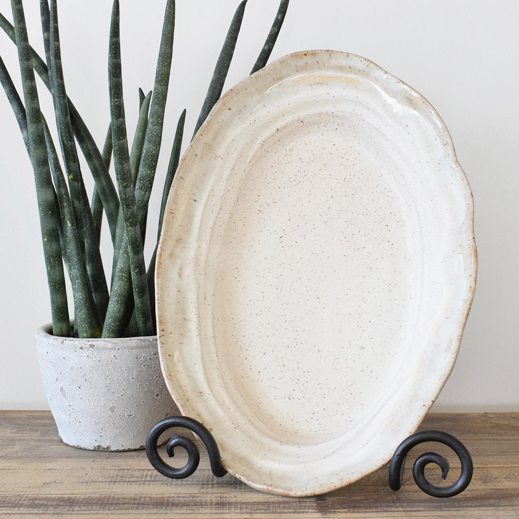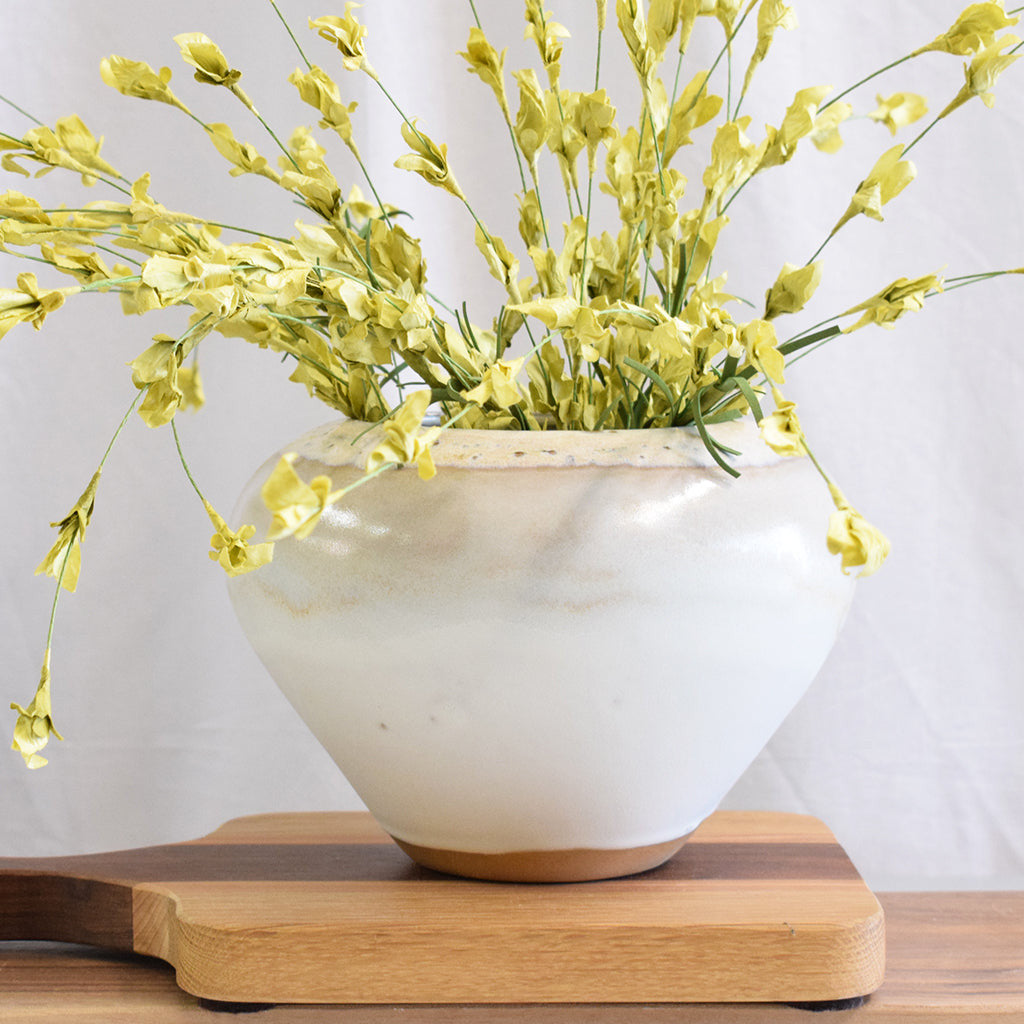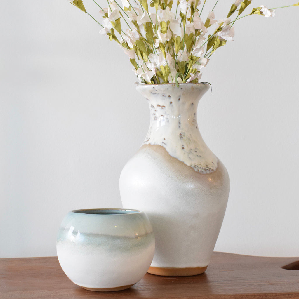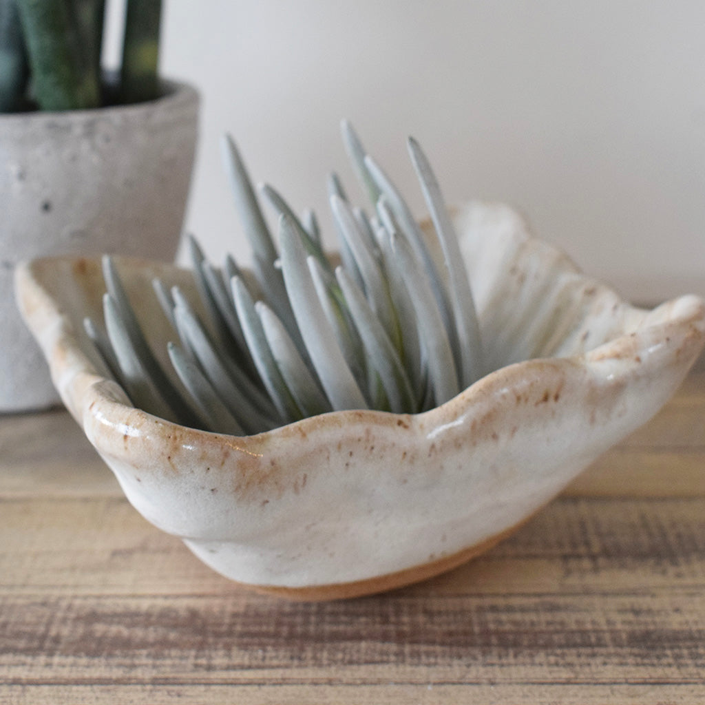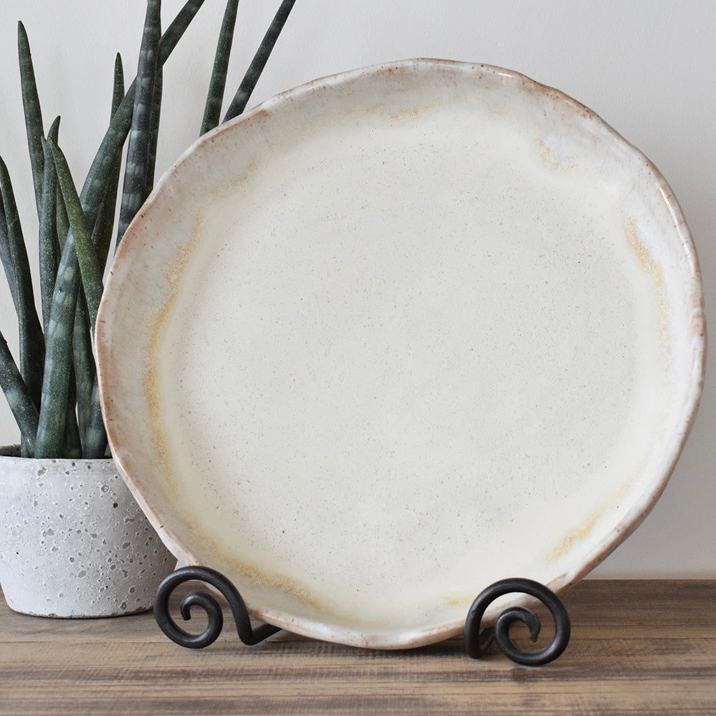 The Dogwood glaze from Etta B Pottery features a beautiful blend of beige, off white, & ivory tones. The matte glaze on the lower portions of each piece are a wonderful cream color & the glossy glaze around the edges are a perfect blend of ivory, light brown, off white, & sometimes you can even find a hint of a rust/orange color. The neutrality of this glaze is truly gorgeous! We believe that this glaze pairs best with pieces from the Hydrangea or Peaceful collection.