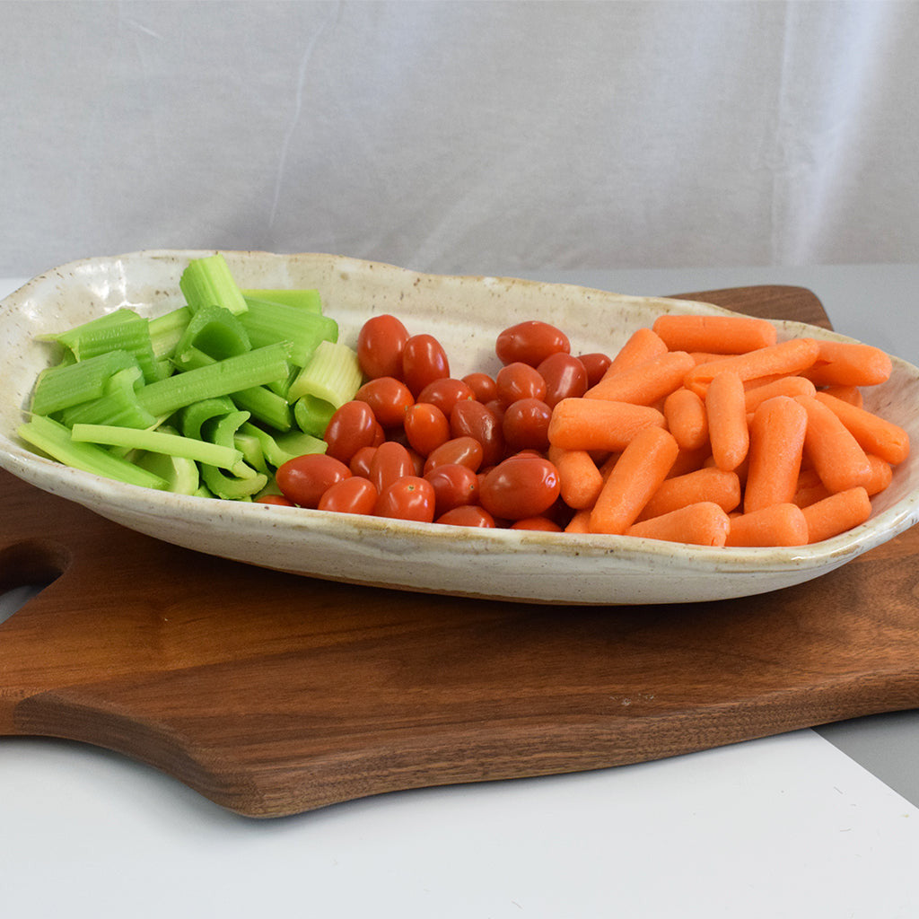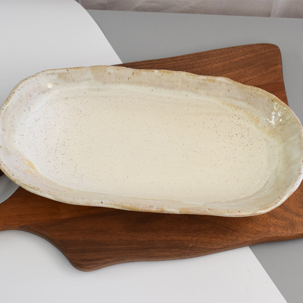 Each unique piece of Etta B Pottery is handcrafted and meticulously hand painted. The beautiful glazes provide a color palate sure to coordinate with any décor. The distressed and antique accents on these exquisite textures makes each piece a treasure. Though similar, no two pieces are just alike. This particular piece measures 16"x 8"x 2.5".