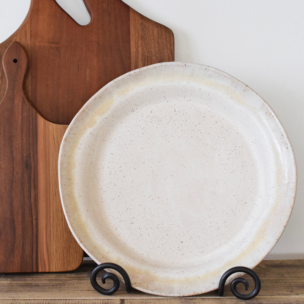 Each unique piece of Etta B Pottery is handcrafted and meticulously hand painted. This beautiful glaze is sure to coordinate with any décor. This versatile piece is the perfect size for an appetizer, desserts, or cheese tray & would make the perfect display piece, as well!