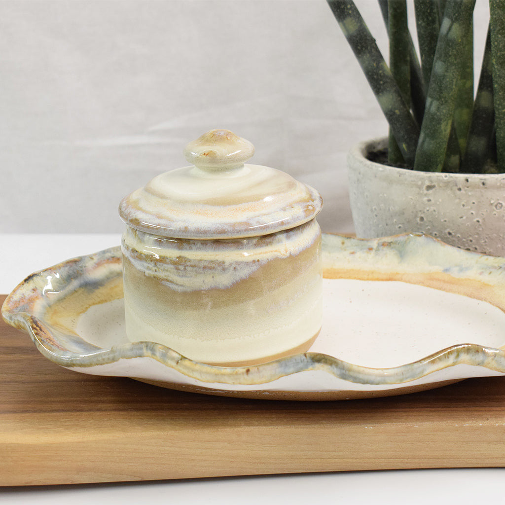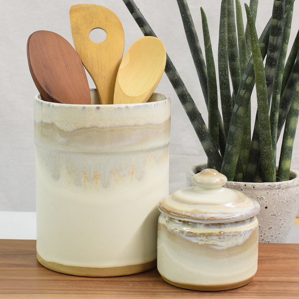 Each unique piece of Etta B Pottery is handcrafted and meticulously hand painted. The beautiful glazes provide a color palate sure to coordinate with any decor. The distressed and antique accents on these exquisite textures makes each piece a treasure. Though similar, no two pieces are just alike.