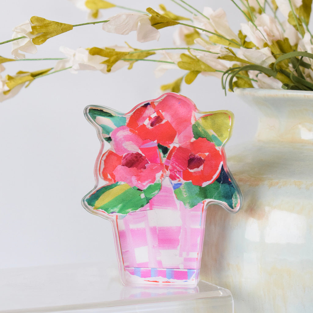 Enhance your surroundings with the Bitty Funny Girl Acrylic Block, a contemporary and floral decoration for any tabletop. Ideal for presenting as a gift (who doesn't enjoy a delightful surprise?), this block features Lauren's artwork and stands independently at approximately 4" x 3.5" in size, crafted from 1/4 inch thick acrylic.