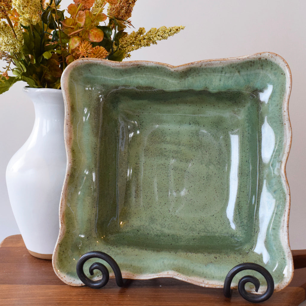 Add a touch of art to your dining experience with this Medium Square Bowl in Matcha Leaf! Its pottery construction makes it both dishwasher and oven safe, so you can easily serve and entertain with ease! Who knew a square bowl could be so sophisticated?!
