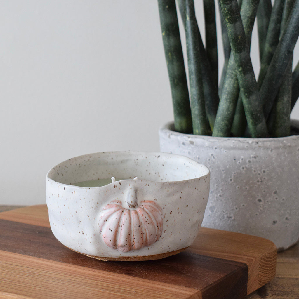 What a great way to add a little personality to a room! These hand made candle bowls hold a fragrant gentle scent while providing a little subtle decorative flair. Each candle is double wicked for even burning. When candle wax is used up, upcycle the bowl for a fun catch-all! Scent- Fall Festival (7 oz)