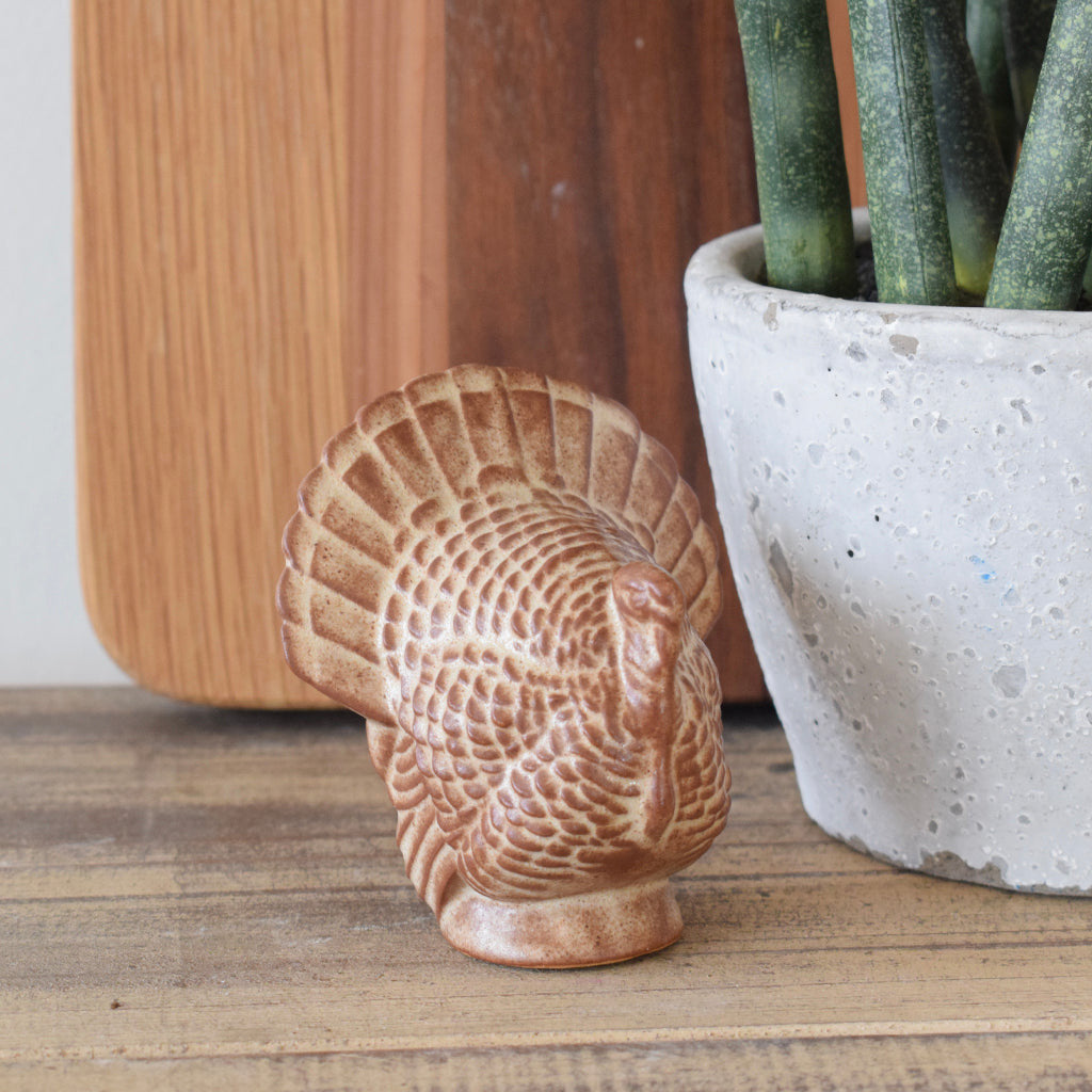 This sweet baby turkey will make an excellent edition to your pottery collection, whether on a shelf or a table. Would make a great gift for the turkey hunter! Measures 3.5"x3". It's sure to put a smile (and a wink) on your face—a great way to show off your avian style.