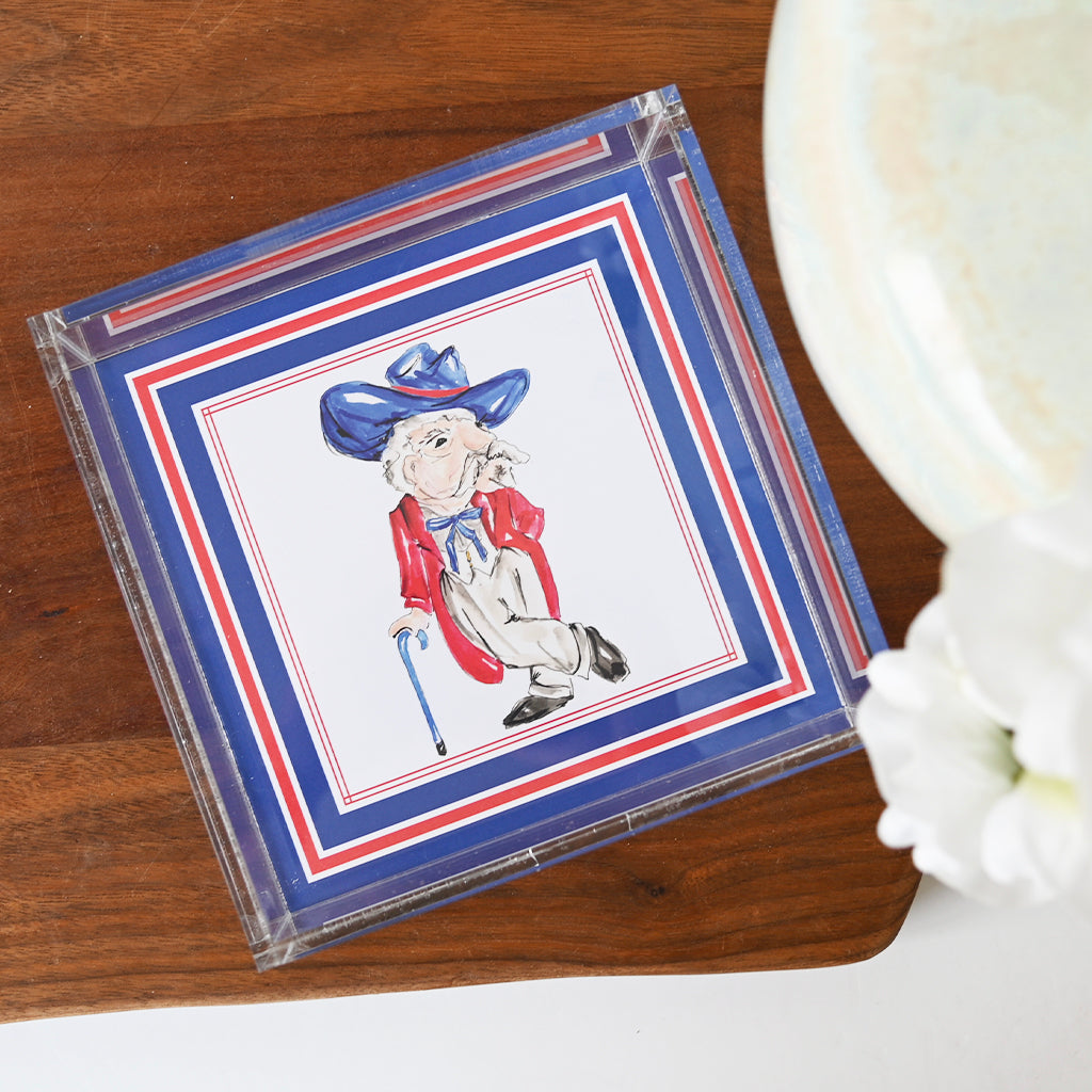 This small acrylic tray adds a splash of fun with its hand-painted rebel design that’s reversible—two looks in one! Perfect for holding your favorite trinkets or serving up snacks with a twist of personality. Durable and easy to clean, it’s a playful way to brighten any space.