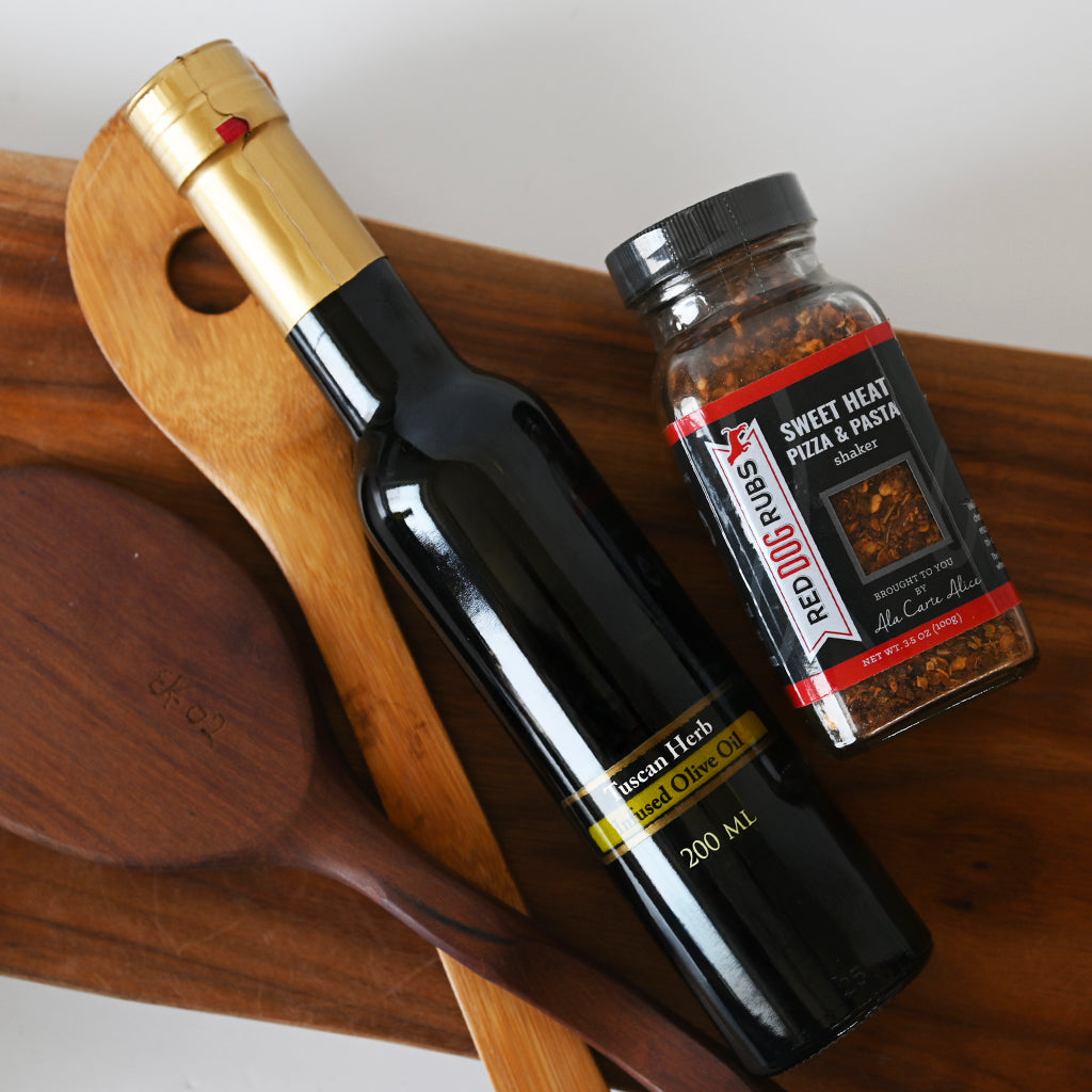 Fire up Dad's grilling game with this sizzle-worthy gift set! The Southern Sizzle gift set packs a flavor punch with mouthwatering Sweet Heat seasoning and Tuscan Herb infused olive oil that'll have him doing his happy dance at the grill.