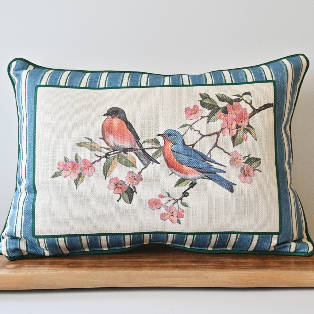 Bring a little outside in with this charming bird striped pillow. Perfect for adding a touch of nature-inspired style to your indoor spaces, this rectangle pillow features delightful bird motifs paired with classic stripes. Measures approximately 18"x14". Not recommended for full outdoor use.