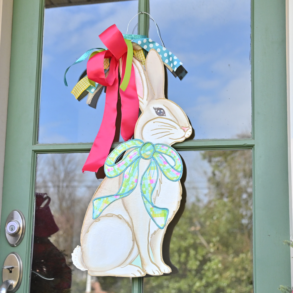 Let everyone that drives by your house know you are celebrating Easter! These a-door-able and durable door hangers are sure to show your spirit. Measures 28" high and 9.5" at its widest. Comes affixed with coordinating ribbon for instant hanging.