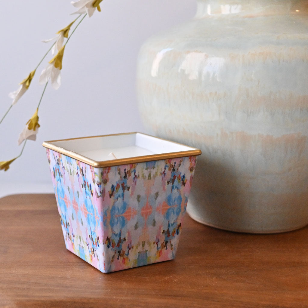 These mini cachepot candles are multiuse! When the wax has burned out, upcycle the pot into a planter or anything else you can think of! Hand-poured candles with one pound of wax for a long burn time. Container is 4" both tall and wide and is 3" wide at the base.