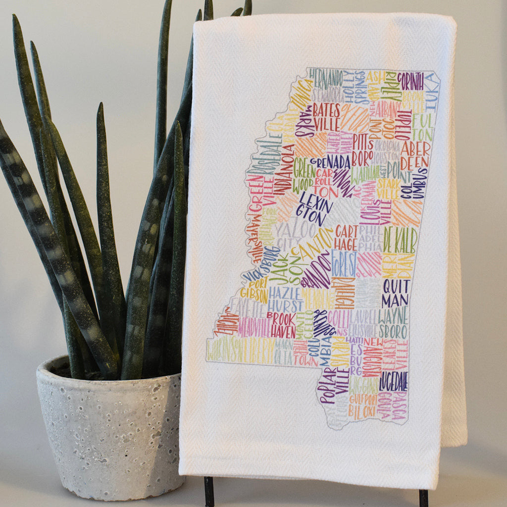 Can you find your county seat? Celebrate all the Mississippi counties with this adorably unique hand towel. Great for the kitchen or guest bath. Super durable and machine washable.