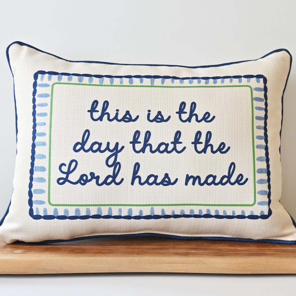 Celebrate faith and inspiration with this meaningful pillow featuring the uplifting message "This is the Day." Perfect for adding warmth and spiritual encouragement to any room in your home. The rectangular design measures approximately 18"x14", making it an ideal accent piece for sofas, chairs, or beds. Crafted for indoor use, this pillow combines comfort with a message of daily gratitude and joy. A thoughtful gift for anyone seeking daily reminders of faith and positivity.