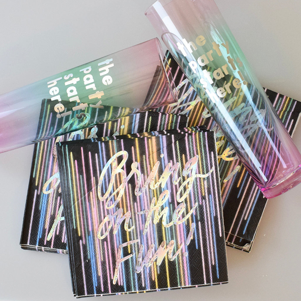 Bring on the fun with this Iridescent Party Set! This has everything you need to get the party started.