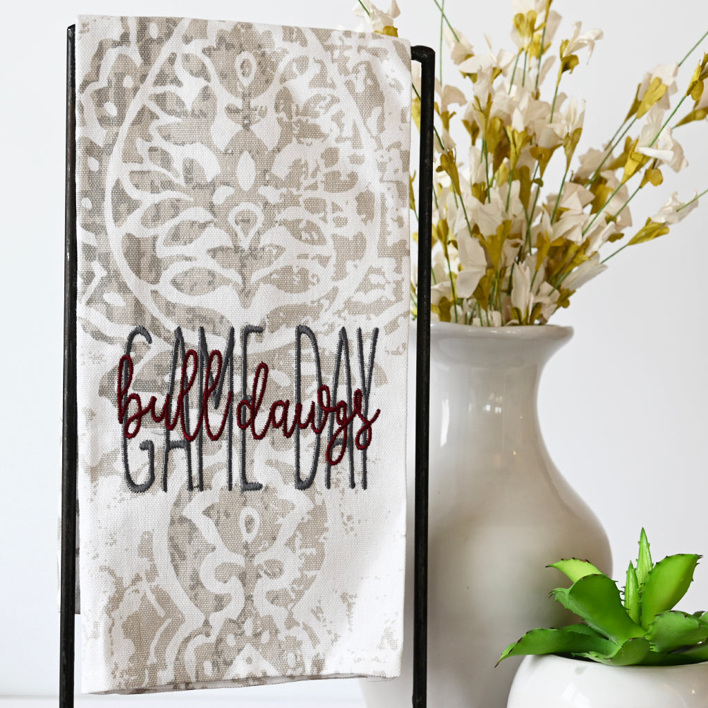 These dapper hand towels will spruce up your kitchen. Crafted from 100% cotton, they boast a spirited pattern with a machine-embroidered bulldog motif—an entertaining way to bring your collegiate adoration into your abode!