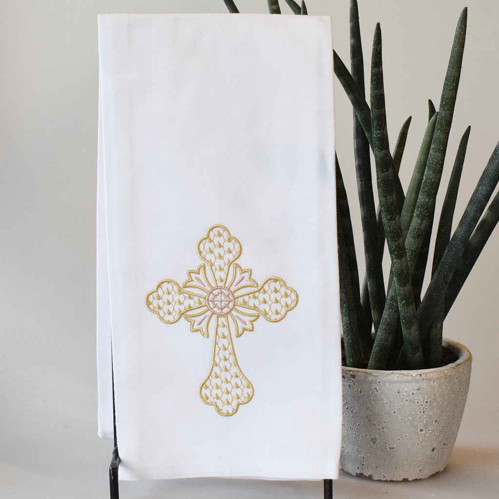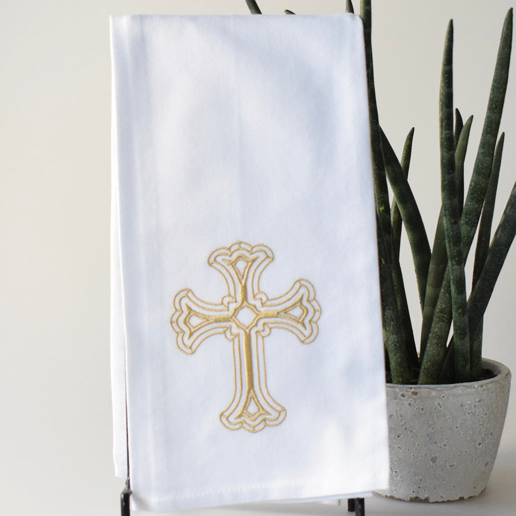 Gold and White Cross Kitchen Towel - TheMississippiGiftCompany.com