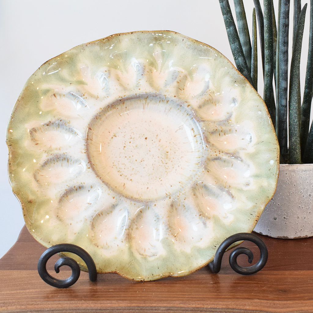 Eat in style with our handmade Handcrafted Egg Plate! This beautiful, one-of-a-kind plate is perfect for serving eggs, entertaining guests, and making breakfasts even more delicious. Dishwasher and oven safe, this egg plate is all you need to show off your cooking skills!
