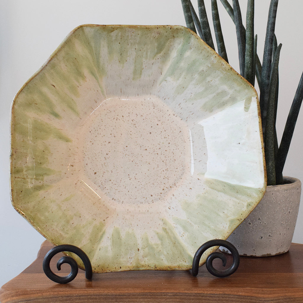 Serve up something delicious with this stylish octagonal bowl! This pottery bowl is the perfect mix of style and function - the blue and green glaze is sure to add a splash of color and personality to your table. When filled with your favorite side dish, it'll be the talk of the dinner party!