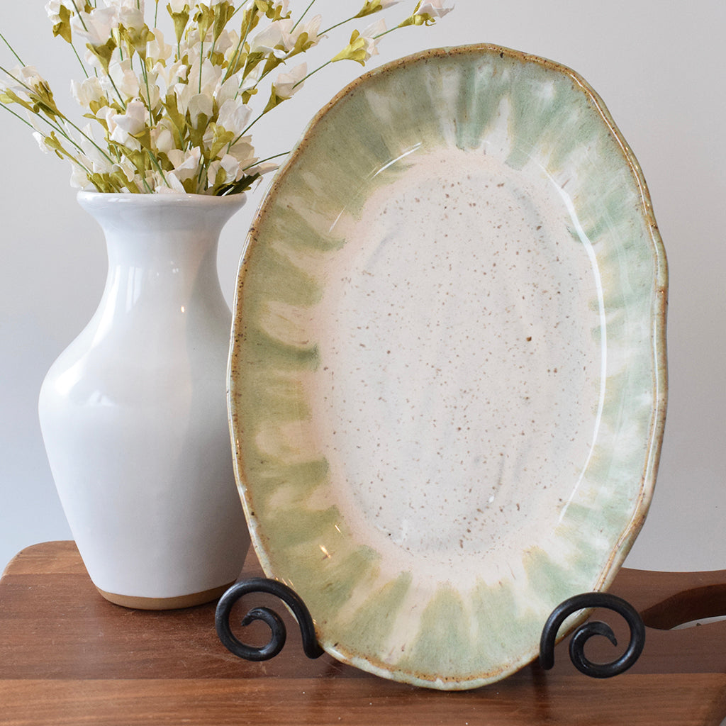 Each unique piece of Etta B Pottery is handcrafted and meticulously hand painted. The beautiful glazes provide a color palate sure to coordinate with any décor. The distressed and antique accents on these exquisite textures makes each piece a treasure. Though similar, no two pieces are just alike.