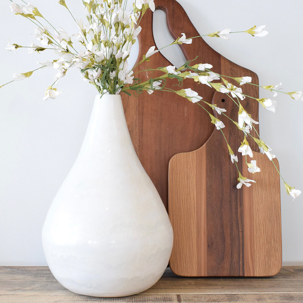 This Moonstone Fig Vase is one of the newest to our collection! With tones of cream, white & little specks of green - this vase is neutral & beautiful. Fill it with your choice of florals & enjoy!