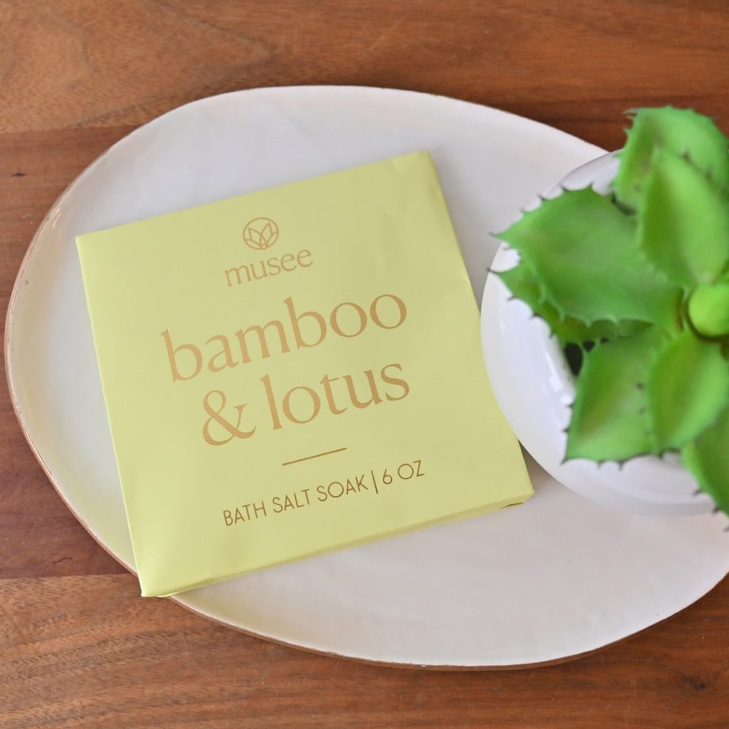 Ingredients: Epsom Salt, Pacific Sea Salt, Shea Nut Oil, Bamboo Essential Oil, Vitamin Soak, Fragrance Oil