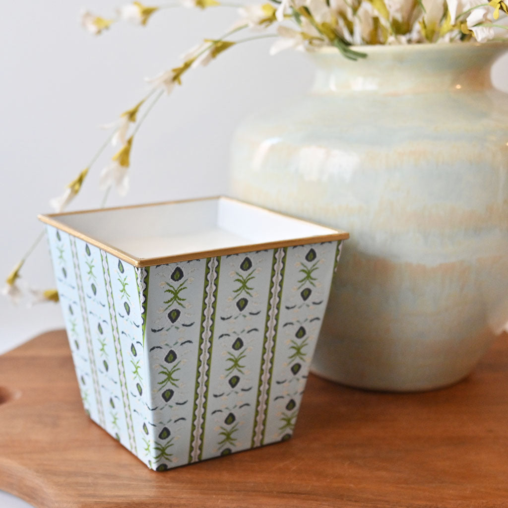 These cachepot candles are multiuse! When the wax has burned out, upcycle the pot into a planter or anything else you can think of! Hand-poured candles with one pound of wax for a long burn time. Container is 5" both tall and wide and is 3.5" wide at the base.