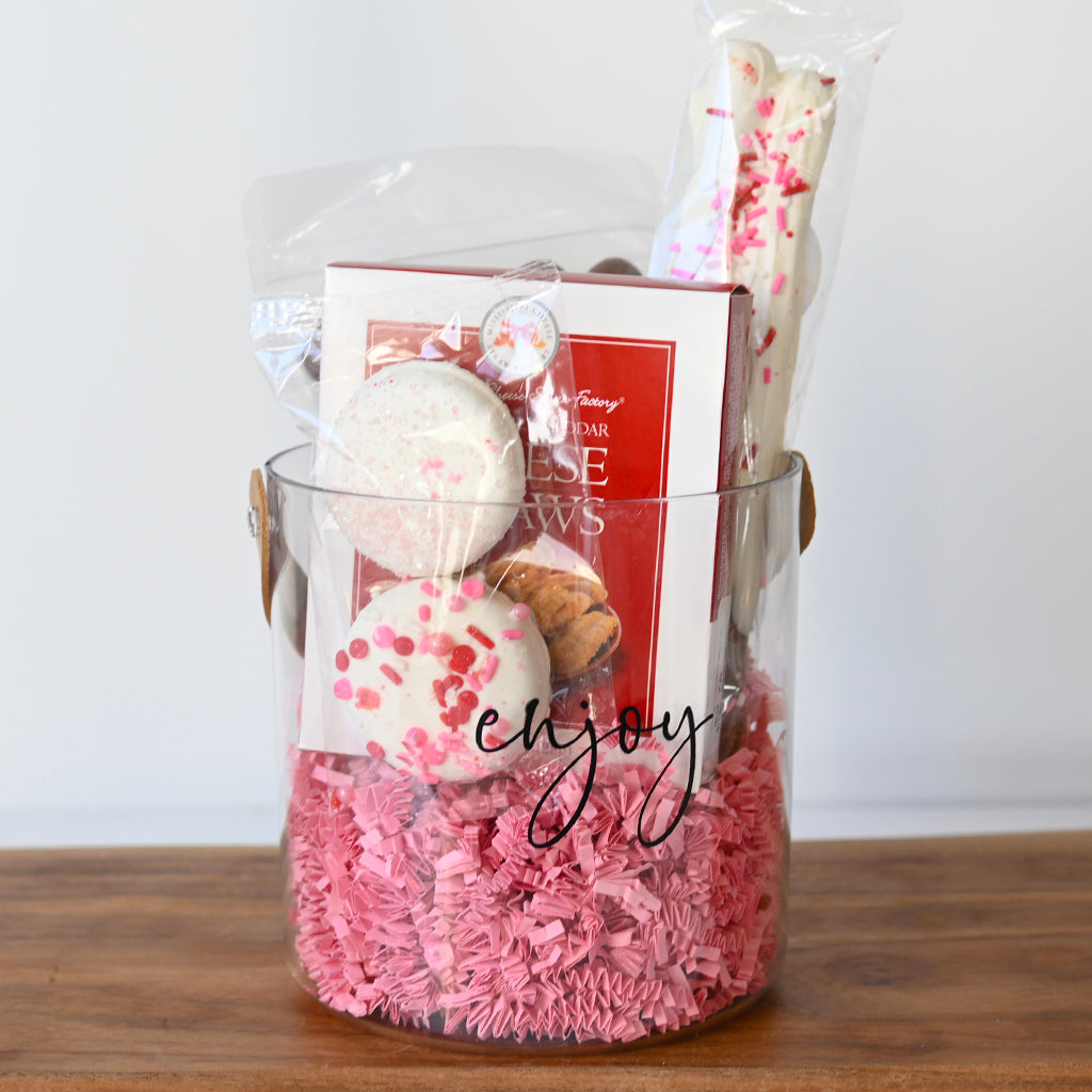 Everything you need to send Valentine's greetings to friends or family, all wrapped up in a small acrylic ice bucket!