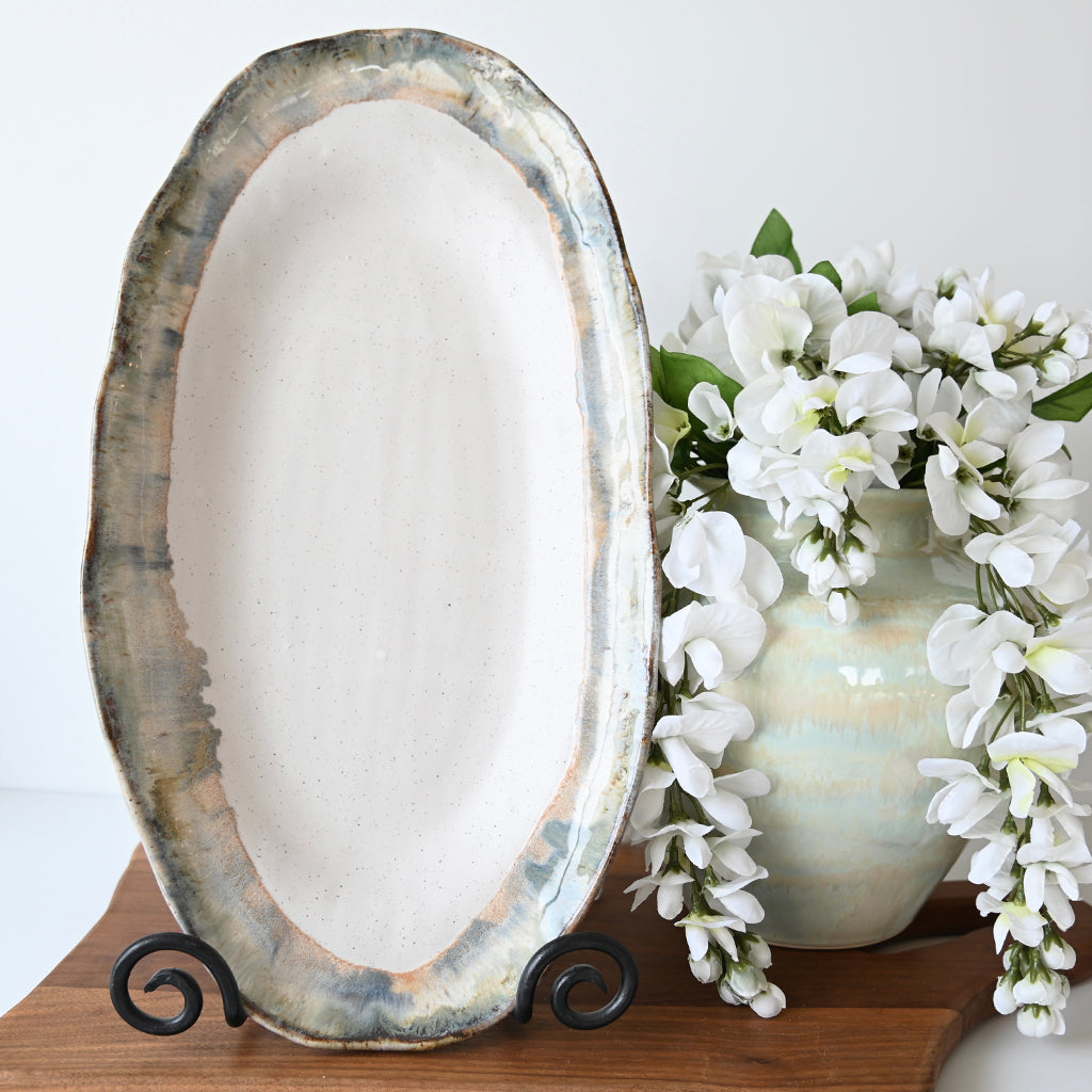 Introducing the Long Oval Dish in the charming Magnolia glaze. This beautiful and functional dish is perfect for serving hors d'oeuvres, appetizers, or as a decorative piece in your home. With its elongated oval shape, it adds an elegant touch to any occasion.