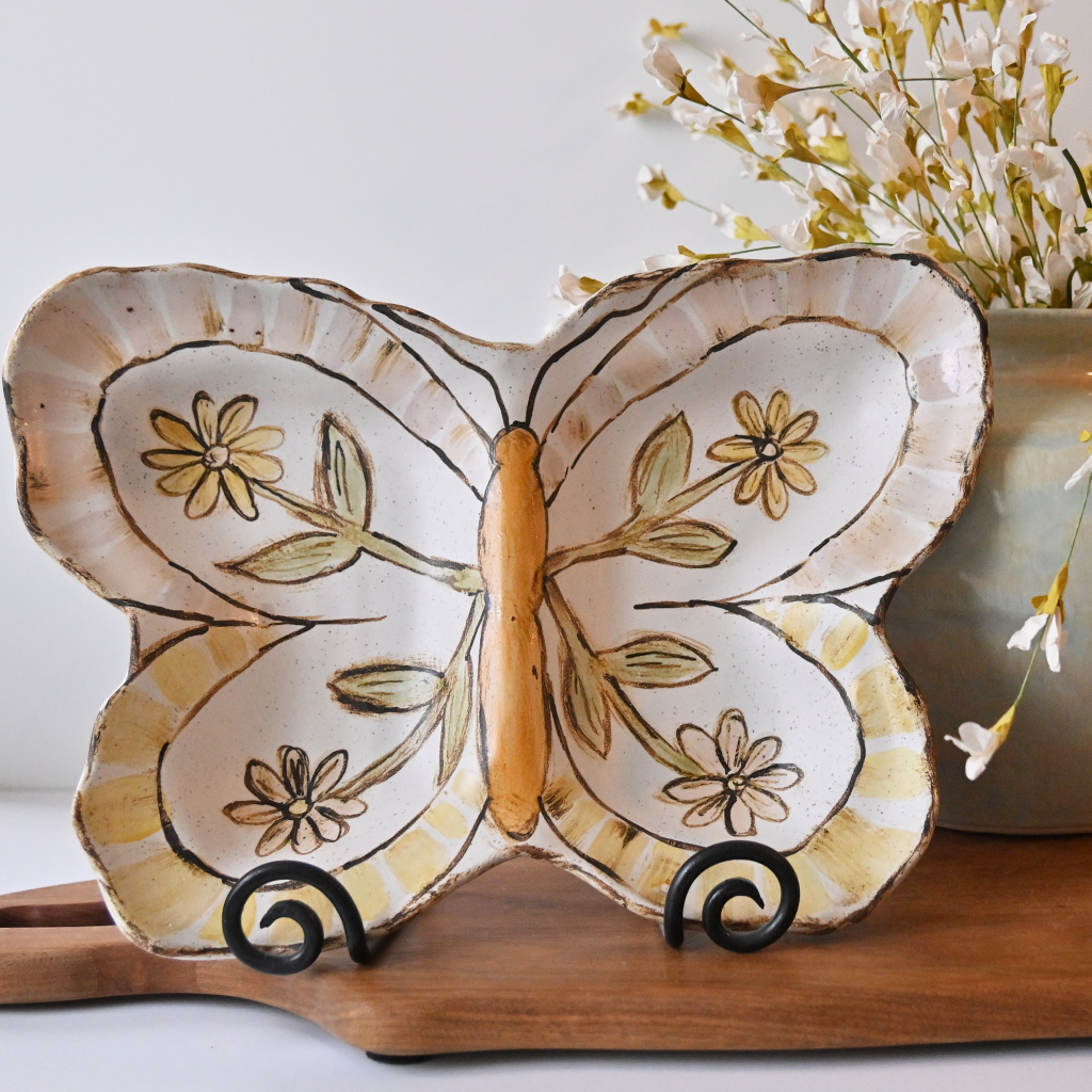 Celebrate the season with this charming Springtime Butterfly Platter, featuring a delightful floral design that captures the essence of renewal and warmth. Measuring 15" x 10" with a 1.5" depth, this platter offers the perfect size for serving appetizers, displaying seasonal décor, or adding a cheerful accent to any room. Its springy aesthetic brings joy and lightness to your table, making it an ideal gift for nature lovers and those who embrace the beauty of the season.