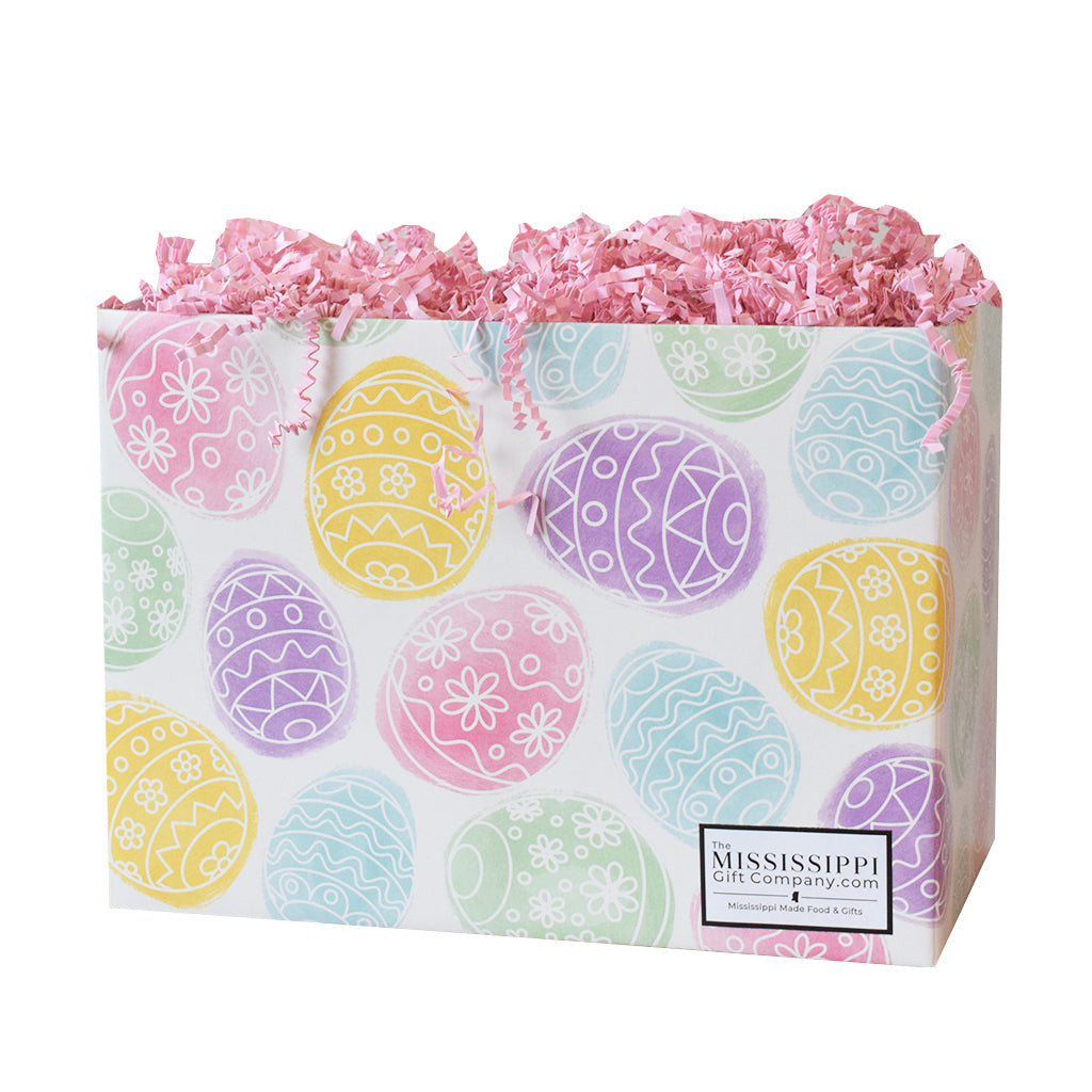 Customize your own Easter basket with these cheerful and colorful gift boxes! Each box can hold 6-8 items, with dimensions of 10"x7.5".
