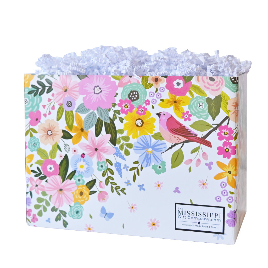Featuring a delightful songbird and blooms design, this unfilled box is ideal for creating personalized gift sets. Whether you're filling it with chocolates, candies, small gifts, or seasonal treats, the spacious interior gives you plenty of room to customize. The sturdy construction ensures your carefully curated selection stays protected and beautifully presented.