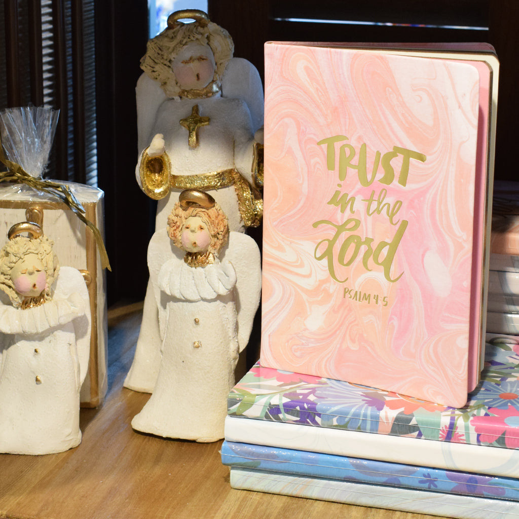 Journal to your heart's content with this cute and trendy journal. Leather bound and gold foiled, this lined journal also features a ribbon to mark a particular place. Makes a great teacher gift, graduation gift, or just a happy! 8"x 6"