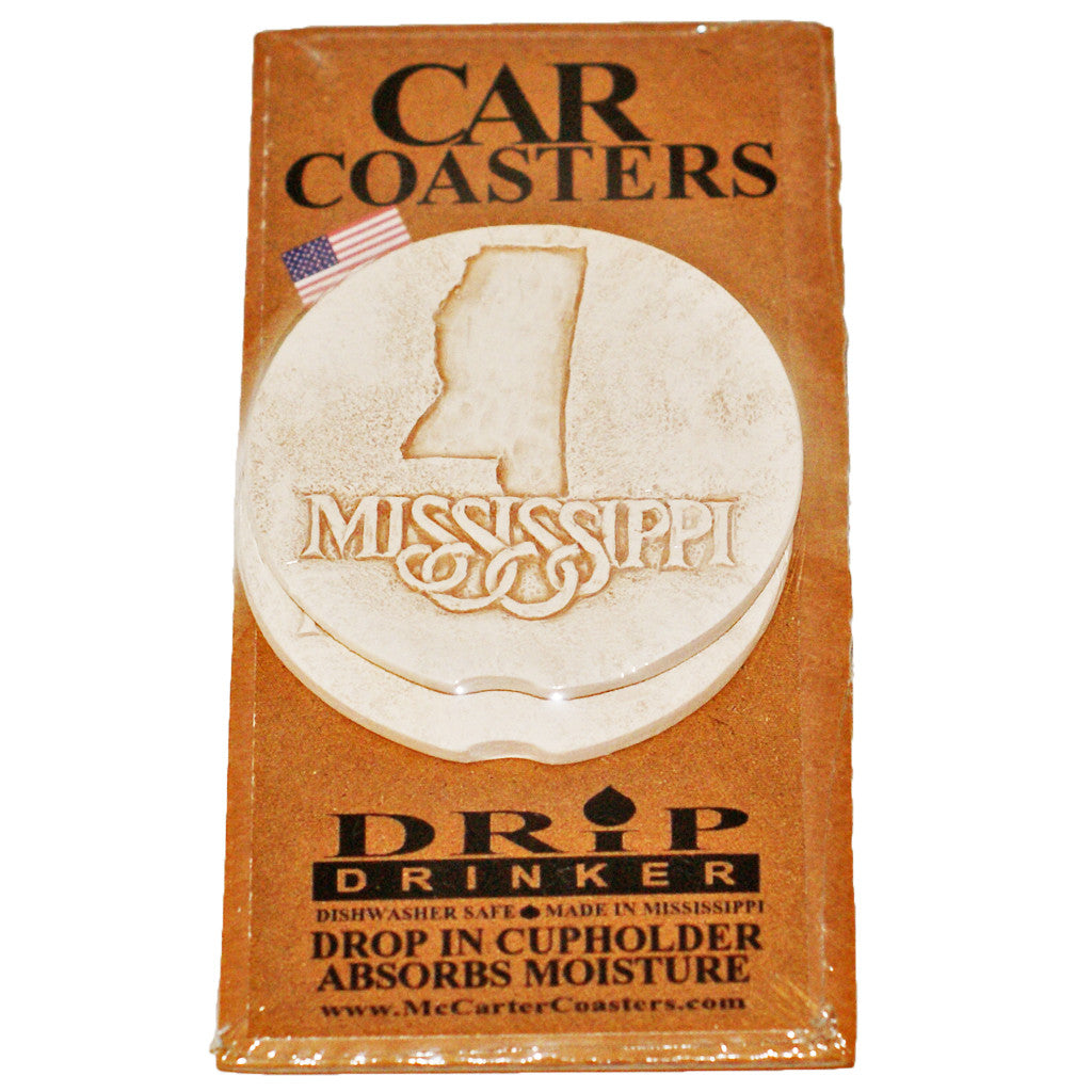 These elegant stone coasters make a great happy or housewarming gift! Made from an absorbent stone, these coasters are inscribed with the logo of the state and state script. Car coasters come as set of two.
