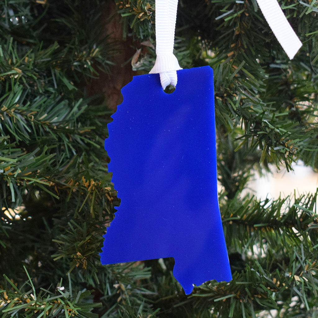 Add a touch of sophistication with our Mississippi Acrylic Ornament in Navy. Crafted from premium acrylic, this ornament measures 3.5"x2" and proudly displays your love for Mississippi. It's a luxurious and exclusive addition to any holiday decor.