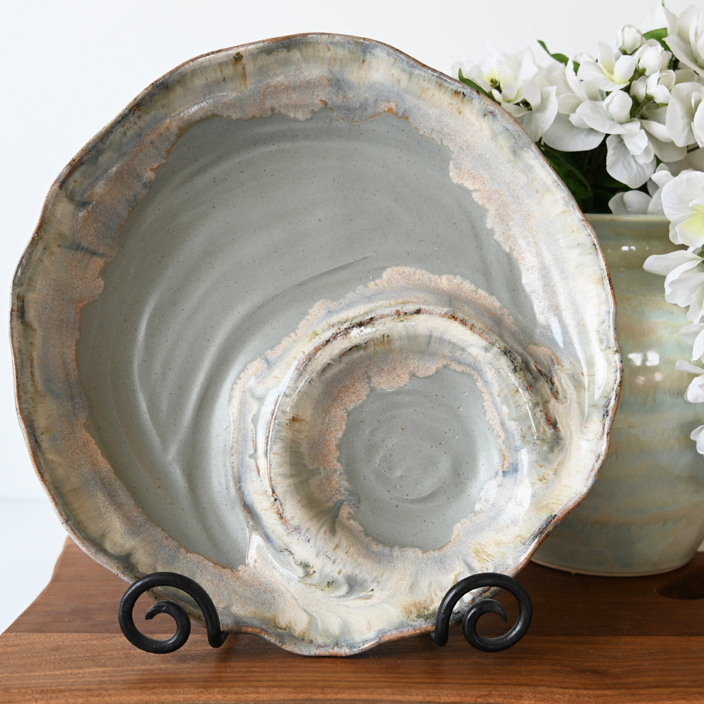 Each unique piece of Etta B Pottery is handcrafted and meticulously hand painted. The beautiful glazes provide a color palate sure to coordinate with any décor. The distressed and antique accents on these exquisite textures makes each piece a treasure. Though similar, no two pieces are just alike.